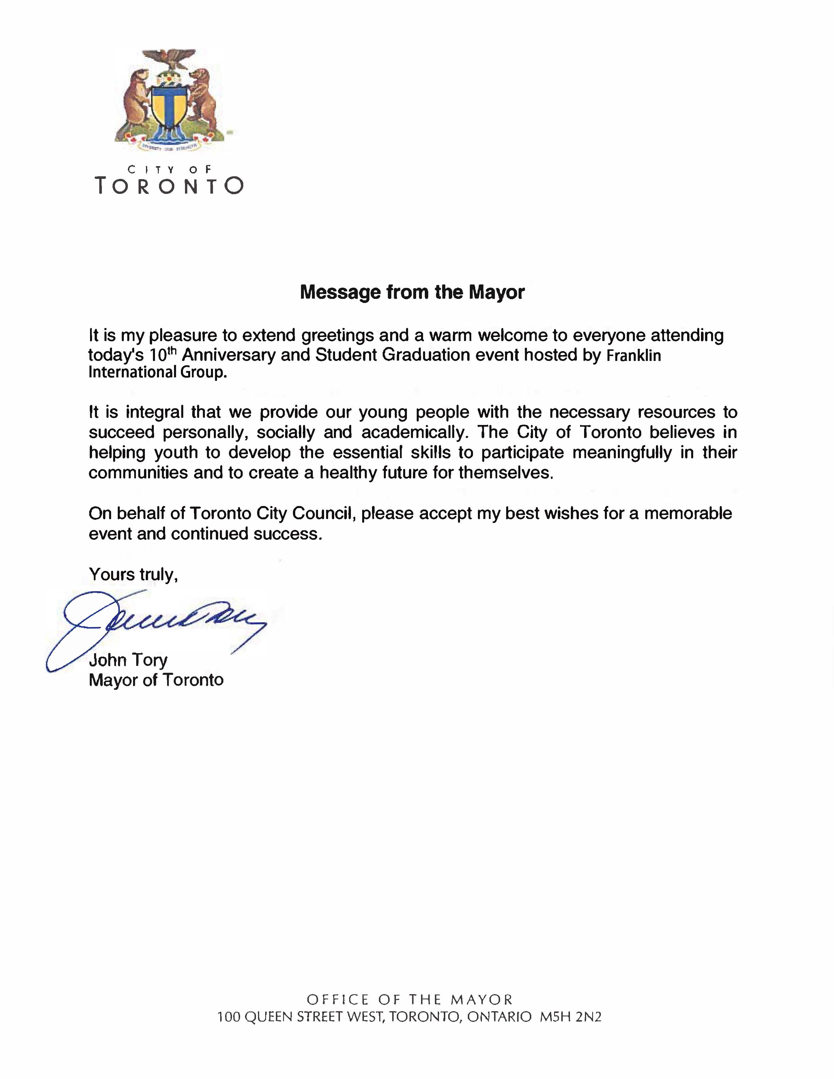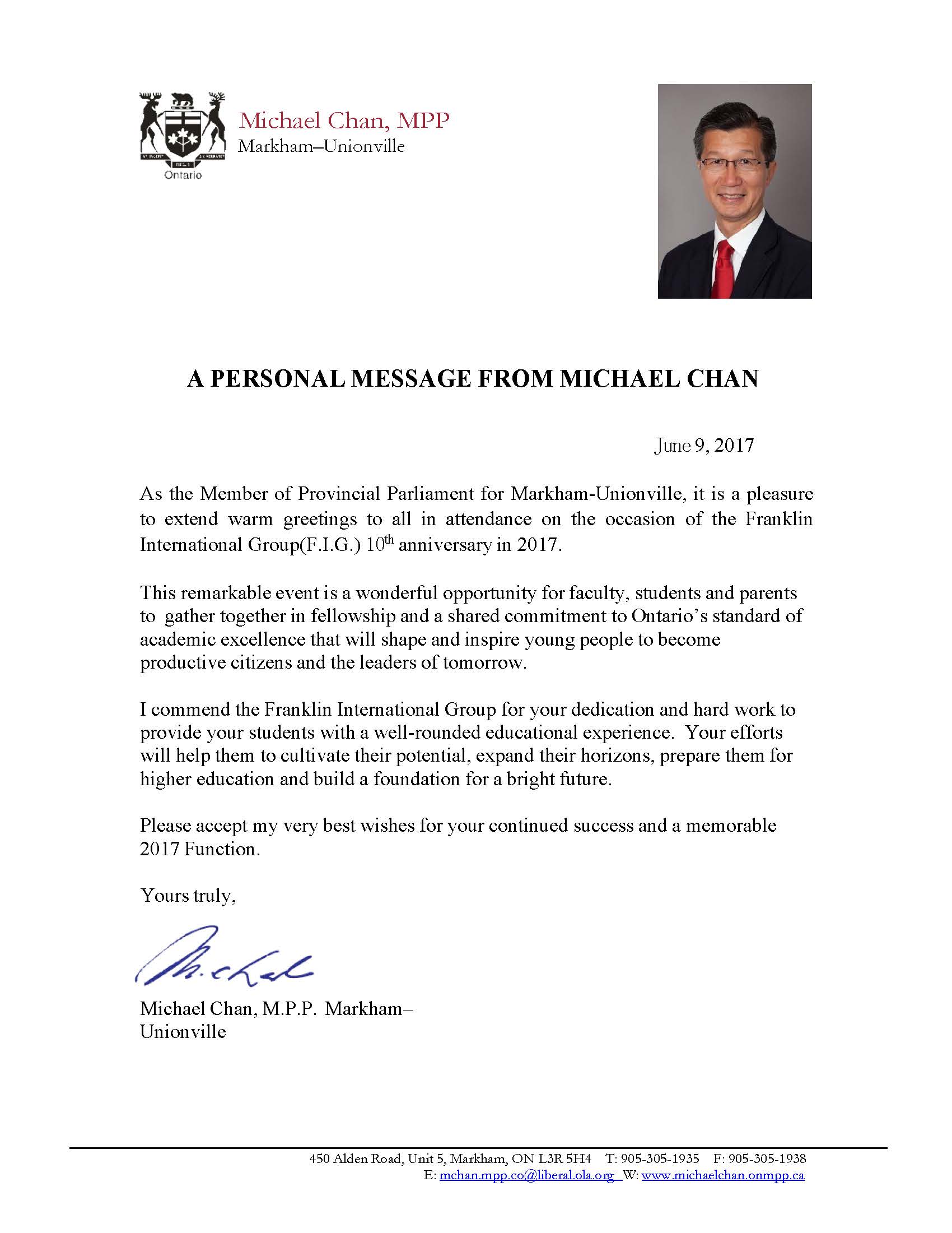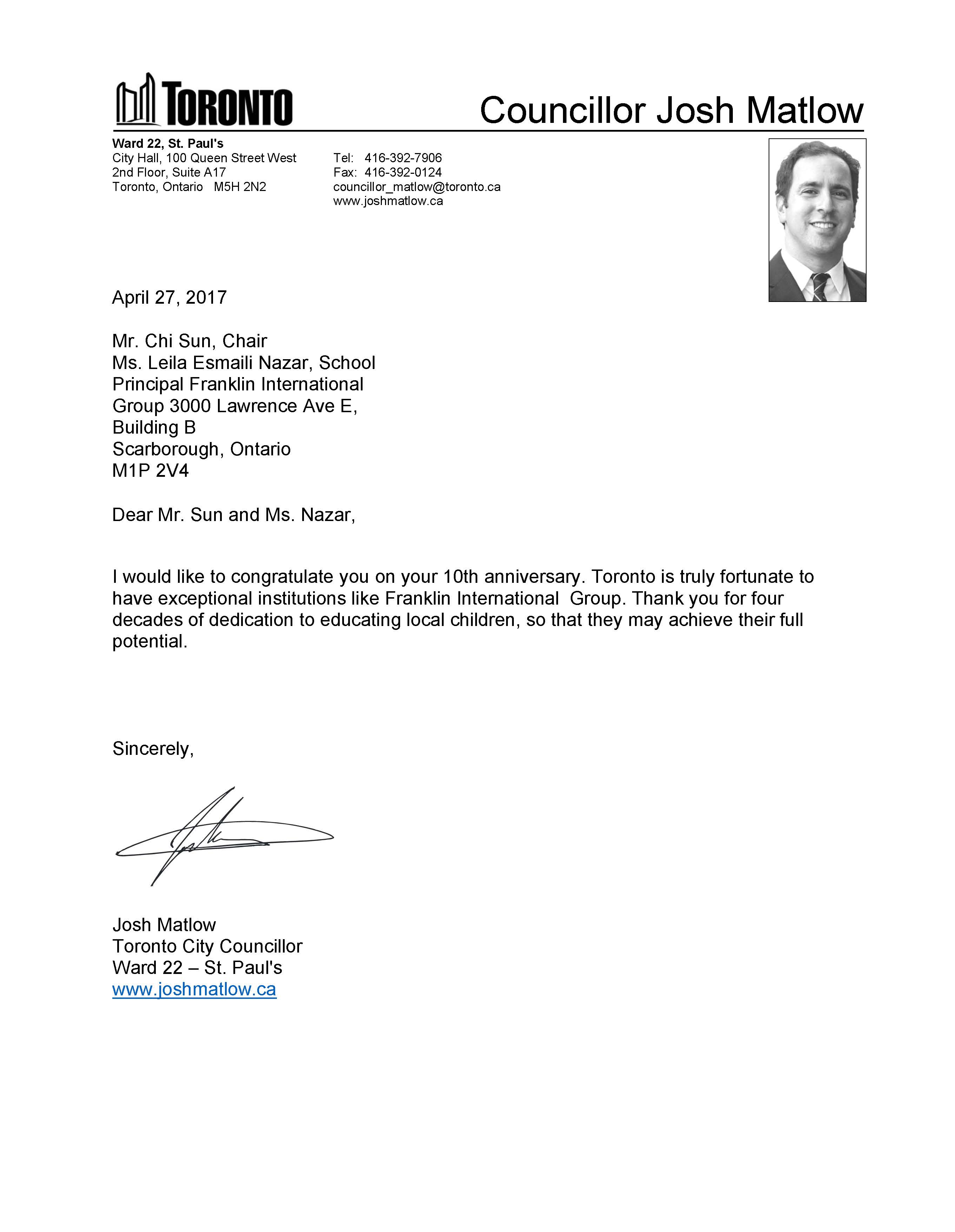 月,成立至今培养了无数优秀的学生。2010年获得加拿大总理-特鲁多,多伦多市长John Tory,加拿大联邦会会长Arnold Chan,加拿大移民局Joe Li markham区长Amanda, Richmondhill 区长Reza Moridi, 的一致推荐。